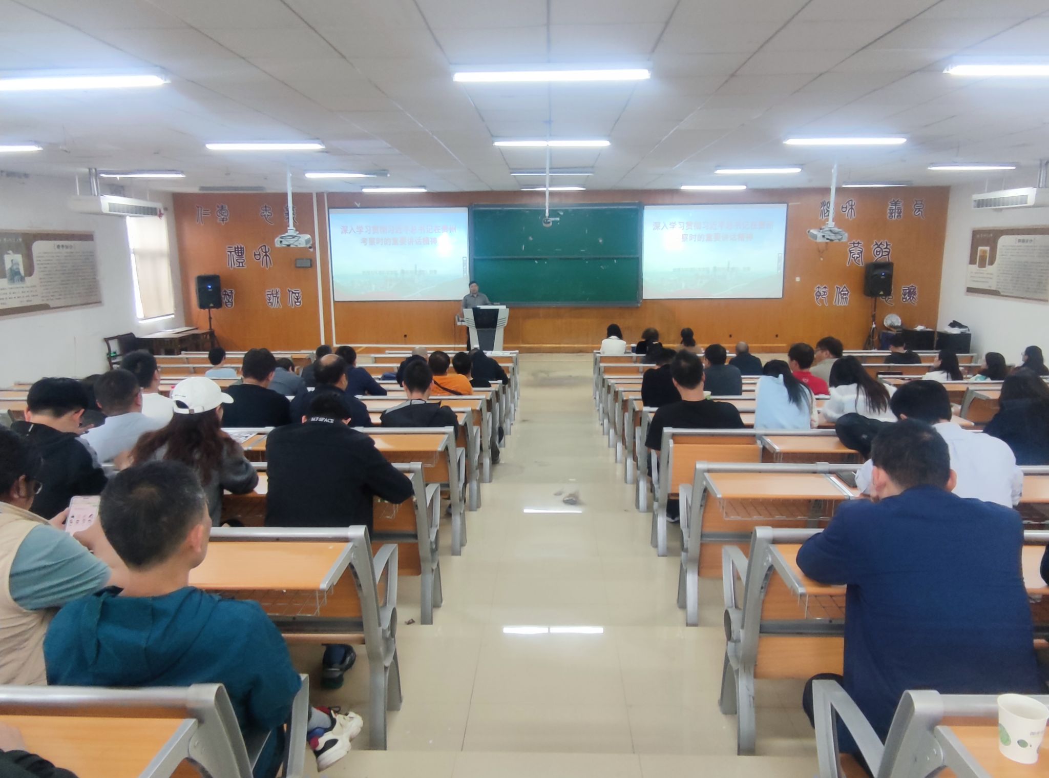 为深入学习贯彻习近平总书记在贵州考察时的重要讲话精神,5月31日下午,院党委在东校区地环楼3501教室开展“理论宣传二人讲”,此次宣讲由院党委书记郭锐,院党委副书记、院长周忠发主讲,全院教职工参加。