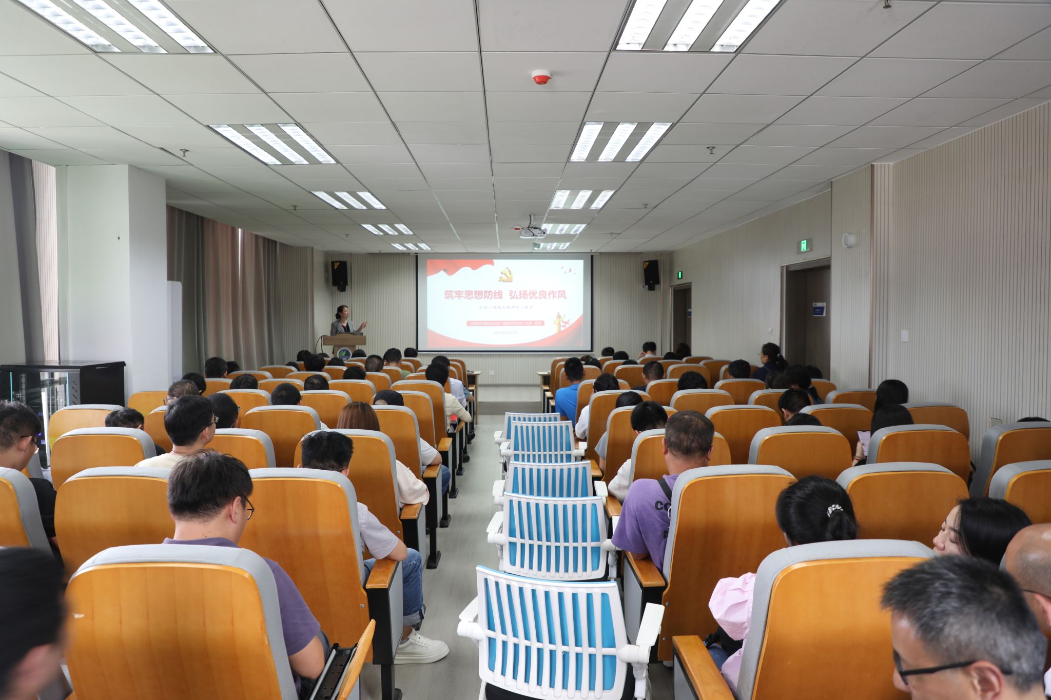 6月27日,院党委书记郭锐以“筑牢思想防线 弘扬优良作风”为题,为学院教师党员讲授深入贯彻中央八项规定精神学习教育专题党课。