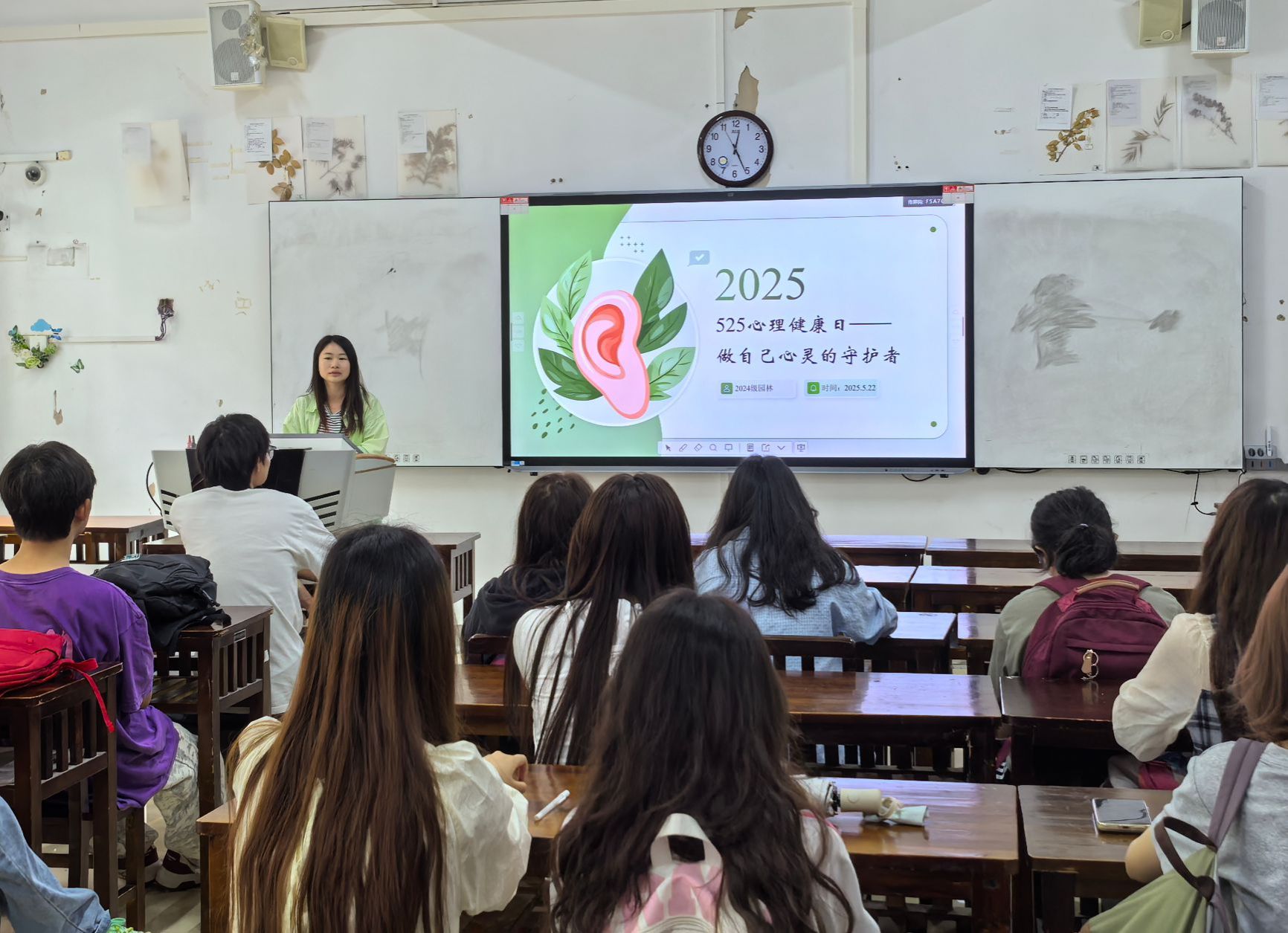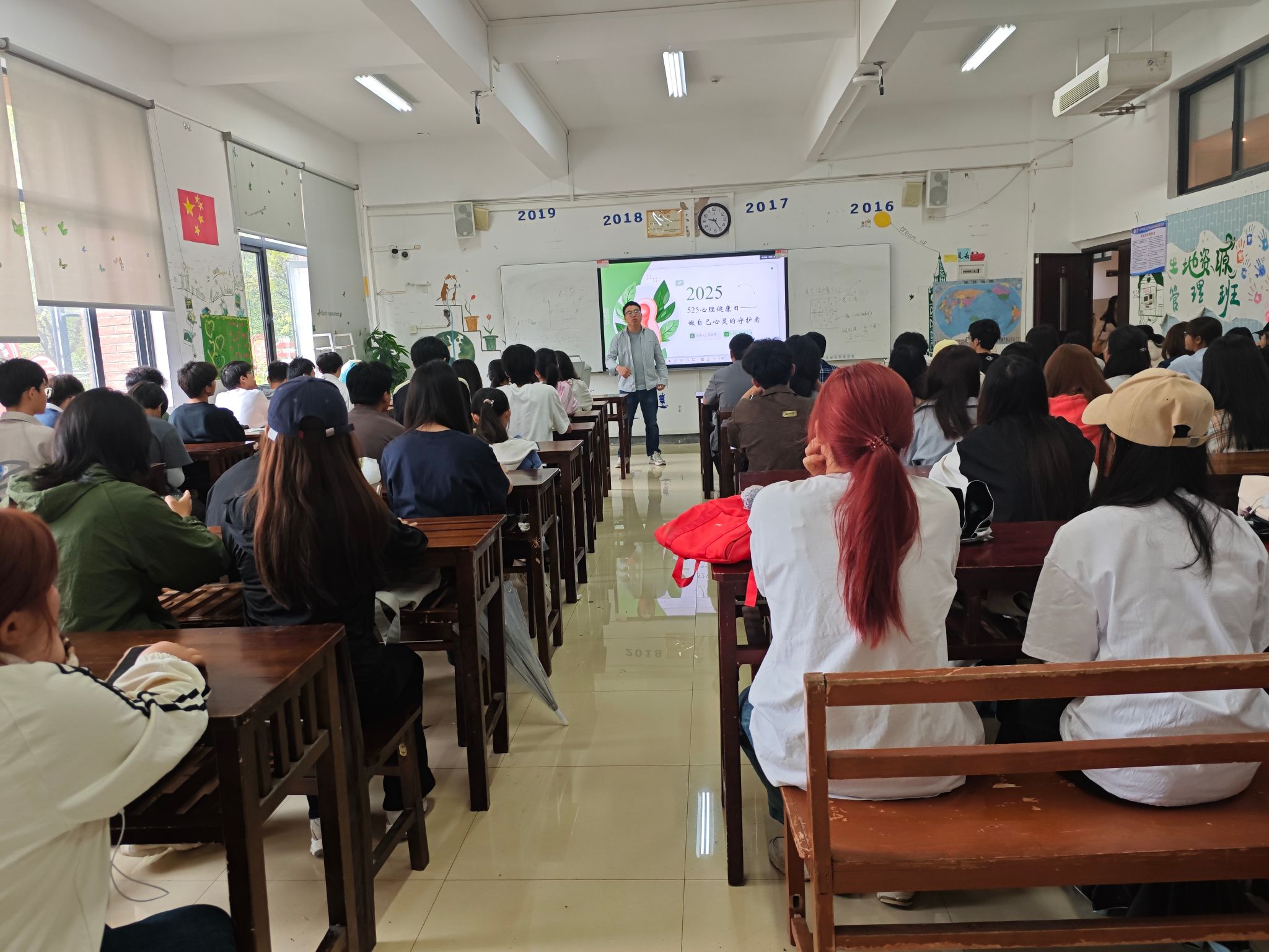 班会上,辅导员系统介绍了心理健康日的起源与意义。旨在倡导学生关爱自我、接纳自我。随后,围绕 “心理健康知识小课堂”“积极情绪培养与管理”“压力缓解与释放” 等六大板块展开:不仅阐释了心理健康的定义与常见心理问题,还通过 “转移注意力”“合理宣泄” 等具体方法指导情绪管理,结合学生群体常见的学习压力、人际关系压力等场景,分享了身体放松法、心理调节法等实用技巧。此外,老师们还通过小红的案例强调了积极自我暗示的重要性,并从“勇于面对挑战”“保持积极心态”等维度提出了心理素质提升建议。