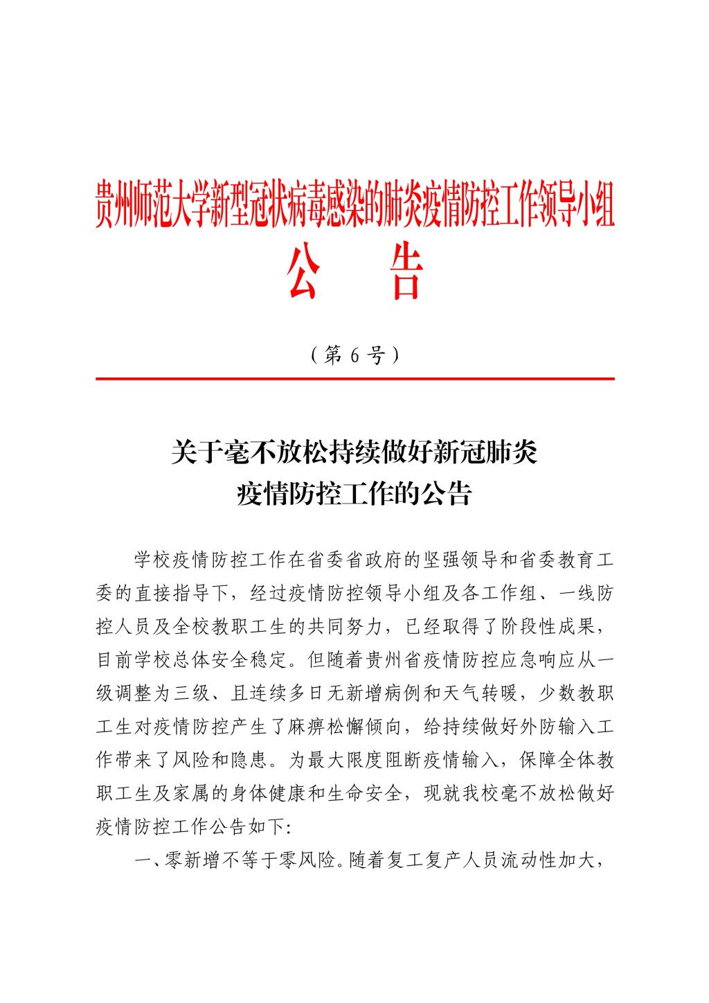 必赢242net官网疫情防控工作领导小组公告(第6号)