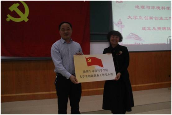 杨建红宣布成立必赢242net官网大学生创新创业党小组,并为党小组授牌。