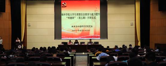 9月26日晚,必赢242net官网党委大学生理想信念教育与能力提升“明德班”(第五期)开班仪式在学校会议中心一楼学术报告厅顺利举行。学院党委书记杨建红、副书记郭锐,辅导员钟玲敏、刘婷婷、翁应芳和402名2018级新生参加了开班仪式。活动由刘婷婷主持。