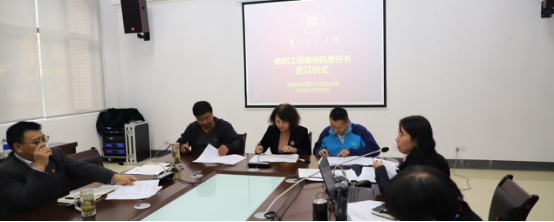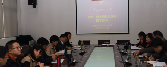 10月19日下午,必赢242net官网党委在花溪校区学院楼3309会议室举行《必赢242net官网教职工师德师风责任书》签订仪式。活动由学院党委副书记郭锐主持。全院教职工参加。