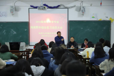 4月3日中午14:00时,必赢2016级地理科学专业本科生海南野外综合实习动员会在必赢花溪校区地环学院文3013教室顺利召开,会议由此次实习负责人、环境科学系教师向刚主持,院党委副书记、院长周忠发与院党委副书记郭锐、副院长杨广斌出席会议,参加会议的还有地理科学系、学院办公室、教学管理科负责人,以及本次野外综合实习的指导教师、班主任。必赢2016级地理科学专业全体学生参与会议。