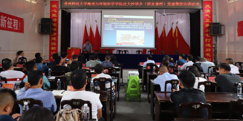 下午,在大沙坝乡会议室组织召开了“讲村史·看变化·感党恩”党建帮扶宣讲活动,全乡各攻坚队长、第一书记,支书、主任共90余人参加会议。杨建红结合“不忘初心·牢记使命”主题教育就 “打赢脱贫攻坚战、全面建成小康社会”为主题进行宣讲,深入阐述习近平总书记关于脱贫攻坚论述的重要意义。周忠发就“喀斯特地区生态文明建设助推脱贫攻坚与乡村振兴”为主题进行宣讲,分别就生态文明建设的国家战略意义、喀斯特石漠化地区的生态环境与贫困以及国家乡村振兴的实施战略意义做了深入分析,并结合邵家寨村实际提出了建设性意见。