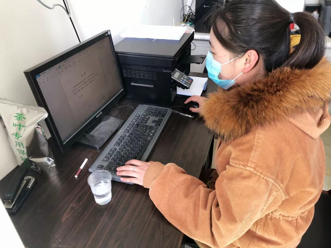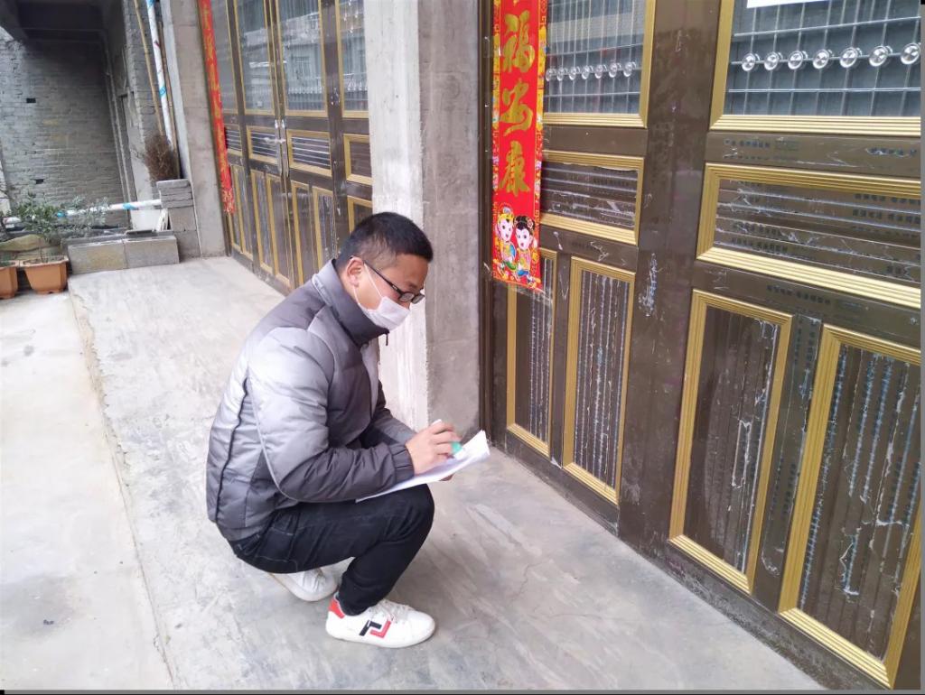 她的工作是驻守在村里的主干道上,对村里人的进出时间、体温、购买的物品等进行登记,对外来人员进行体温、出发地等的登记并劝返。