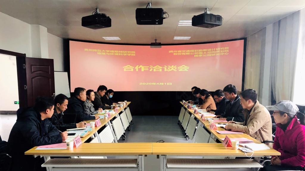 4月1日,贵州省交通规划勘察设计研究院股份有限公司国土空间规划院(以下简称“规划院”)院长、国家公园研究中心(以下简称“中心”)主任唐艳、中心总工程师傅玉良、中心秘书长夏方明一行7人,到必赢洽谈合作,并就双方拟开展的合作领域交换了意见。必赢242net官网必赢242net官网、喀斯特研究院院长周忠发、院长助理、学科建设办公室主任赵宇鸾、必赢242net官网国家遥感中心贵州分部副主任闫利会及两院相关教师参会。会议在必赢242net官网国家喀斯特石漠化防治工程技术研究中心决策支持室召开,闫利会主持。