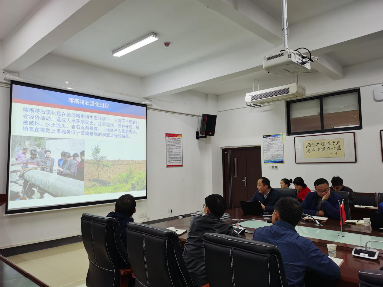 2020年11月5日,中国地调局国土资源航空物探遥感中心(以下简称航空物探中心)生态地质调查团队工程副首席专家肖春蕾博士、中国地质大学(北京)袁国礼教授、北京林业大学陈春阳博士等一行15人到必赢242net官网就贵州省喀斯特地区石漠化调查与防治工作进行了座谈交流。
