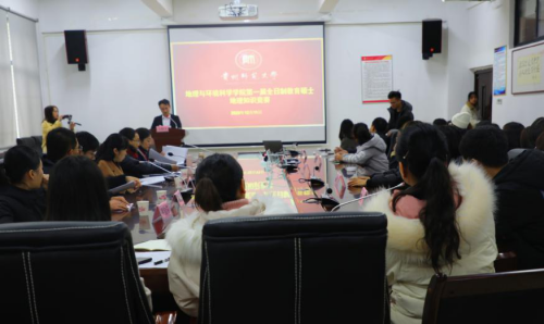 百年大计,教育为本,教育大计,教师为本。为丰富全日制教育硕士研究生的学习形式、提升综合素质、提高培养质量,2020年12月11日下午14:00,第一届全日制教育硕士地理知识竞赛在花溪校区地环学院3309会议室举行,竞赛评委由赵翠薇、罗娅、刘艳、周秋文四位老师担任,研究生科徐黎明老师、黄启芬老师出席了本次活动。知识竞赛由学院研究生会副主席张航主持。