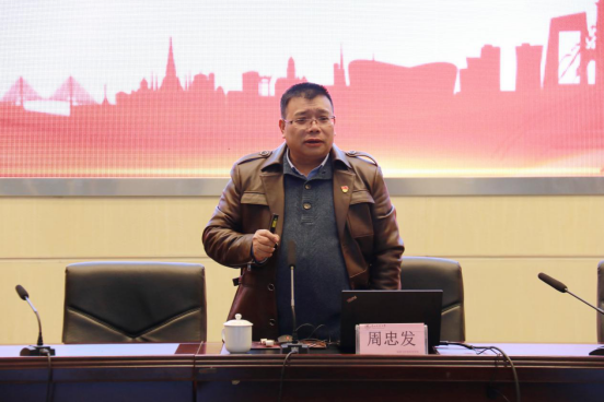 随后,周忠发以《深入学习贯彻党的十九届五中全会精神 推进学院专业建设与人才培养》为题,重点围绕党的十九届五中全会概况、全会重点内容解读、全会释放未来中国发展重要信号、推动学院高质量发展等四个方面为同学进行了详细讲解。