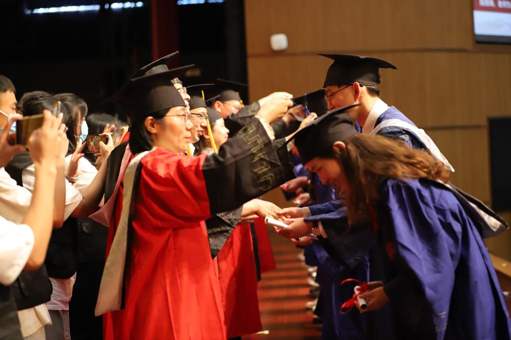 最后,主席台上的领导和老师们为2022届本-硕-博毕业生拨穗正冠,祝贺同学们顺利毕业,寄语大家珍惜时光,勇于拼搏敢于担当,不负时代,不负青春,不负人民。