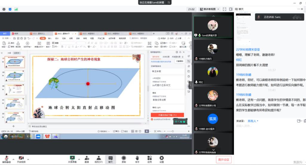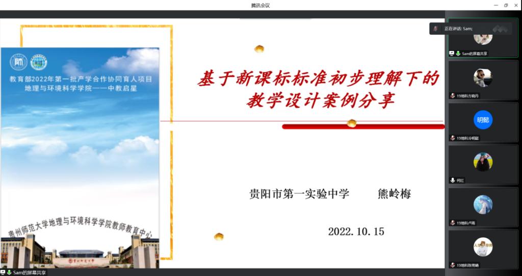 2022年10月15日上午9:00,教育部第一批产学合作协同育人系列讲座之《基于新课标标准初步理解下的教学设计案例分享》采用线上方式进行。贵阳市第一实验中学地理教研组组长,高级教师、贵阳市骨干教师熊岭梅应邀作专题报告。必赢教师教育中心何红、周光发、王青、徐燕、刘智慧等老师,2019级、2020级地理科学专业本科生,2021级、2022级学科教学(地理)专业硕士研究生,求是学院地理科学专业本科生共130余人聆听。教师教育中心副主任何红老师主持讲座。