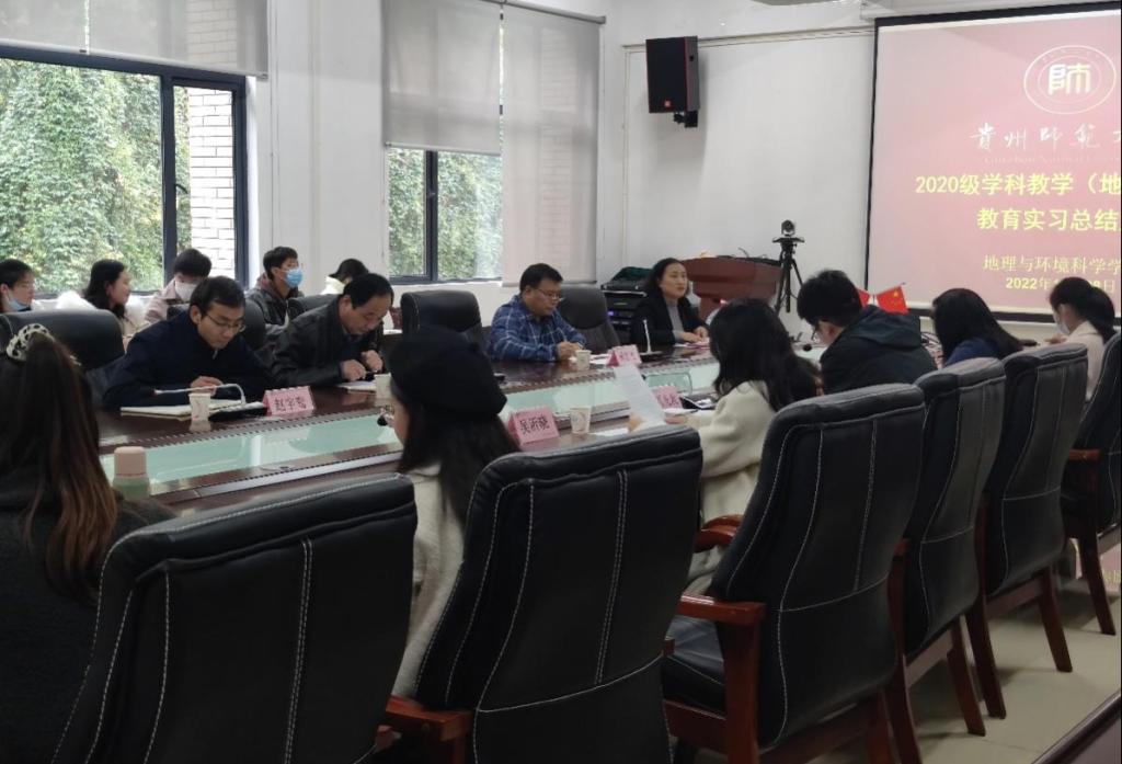 总结会上,遵义一中、贵阳六中、贵阳二中的3名2020级研究生代表进行了教育实习工作总结,分享了实习心得。遵义一中实习生代表张航从教学实习、班主任实习、实习心得等方面,总结和分享了其在基础教学工作上的磨练、课堂教学方面的心得体会以及对班主任工作的细致、繁琐的深刻体验,并提出“学以致用、用以致学”的宝贵经验,强调研究生阶段研究能力的培养和以实践检验知识的重要性。贵阳六中实习生代表杨思思则分别从校内实习、校外实习、实习工作等方面,展示其在听课、备课、教研过程中的经验和收获、研学旅行以及自然、人文地理实践活动中知识、能力的提升,表达了对贵阳六中老师严格要求和指导、学院悉心培养的感谢,同时也分享了自己在与学生交流、教育教学、应聘工作等方面的经验和建议。贵阳二中实习生代表彭红梅从班级工作、地理教学工作、教务工作、个人学习等方面展示其在实习工作中的收获,在做好听课、备课、上课的本职工作的同时,也需要善于观察学生、了解学生学情,进而完善教学设计,并要善于与其他教师进行交流、研讨,共同学习和进步,最后强调在实习前做好课题研究的准备,以便通过实践进行分析和研究。汇报结束后,教育实习指导老师李亦秋老师和周光发老师分别对此次教育实习工作进行总结,肯定了此次教育实习工作开展过程的完整性,同时也指出其中存在的问题和不足。