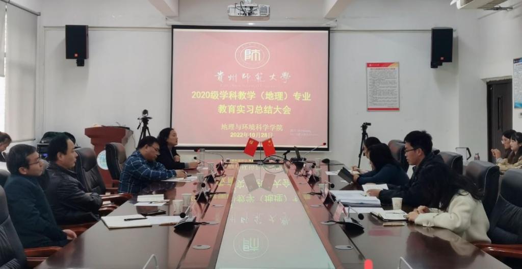 为总结教育实习工作,分享实习经验,保障学院学科教学(地理)教育实习工作有序开展,不断提升教育实习质量。10月28日下午,2020级学科教学(地理)专业教育硕士教育实习总结大会在3309会议室举行,院长周忠发老师、副院长赵翠薇老师、杨广斌老师、赵宇鸾老师出席会议,教育硕士导师李亦秋老师、周光发老师,研究生管理科黄启芬老师、吴沂晓老师等参会,学院2020级、2021级、2022级学科教学(地理)研究生参加总结大会。本次大会由赵翠薇副院长主持。
