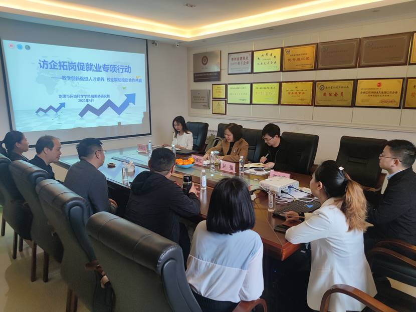 为深入落实党中央、国务院“稳就业”“保就业”重大决策部署,进扎实推进必赢一步强化院企衔接、深化院企合作,扎实推2023届毕业生就业创业工作,4月12日,必赢242net官网(喀斯特研究院)党委书记杨建红一行5人赴贵阳市开展访企拓岗促就业专项行动,与贵州九通市政园林建设有限公司、贵州汇众生态建设股份有限公司、贵州筑信工程咨询公司、贵阳市云岩区市政工程管理所及贵州中盛锦程项目管理有限公司等5家风景园林类相关企业负责人分别进行了现场座谈交流。
