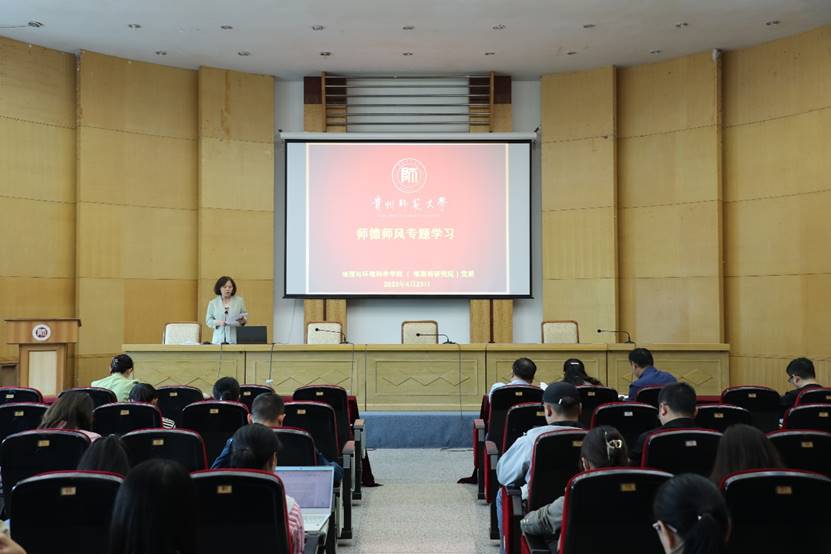 为深入贯彻落实党的二十大精神及习近平总书记关于教育的重要论述,特别是关于师德师风建设的重要指示批示精神,4月23日下午,必赢242net官网(喀斯特研究院)在宝山校区田家炳三楼多功能厅召开师德师风专题学习会议,院党政班子成员、全院教职工参加学习,会议由院党委书记杨建红主持。