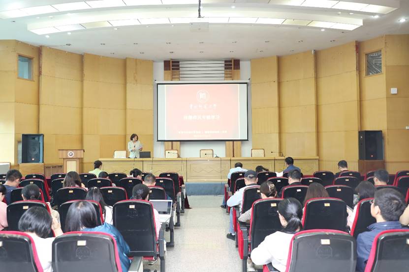 会上,杨建红传达学习关于印发《必赢242net官网师德师风专项教育和治理工作方案》的通知(校党发【2023】19号)文件精神,为全院教师现场讲授“争做‘四有’好老师”讲座,并就学院师德师风专项教育和治理工作启动及相关工作进行安排部署。她指出,全院教职工要进一步提高政治站位,根据习近平总书记关于教师工作特别是师德师风的重要论述和教育部《新时代高校教师职业行为十项准则》、高校教师“红七条”等内容,结合上级部门和学校相关文件精神,全方位、深层次加强对师德师风理论知识的学习和践行。她要求,全院教职工要强化责任落实,加强师德师风的宣传和教育,统一思想认识和开展好此次专项教育和治理工作,要以此次学习为契机,进一步加强全院教师队伍师德师风建设,增强教书育人的责任感和使命感,引导全院教师时刻牢记职业使命,真正起到“传道授业解惑”的作用,在课堂上不仅要传播知识,更重要的是教会学生形成正确的“三观”,培养学生坚定理想信念,树立报效祖国的远大理想。始终牢记为党育人、为国育才的重任,坚持立德树人这一根本任务,争做“四有”好老师,办好让人民满意的教育。
