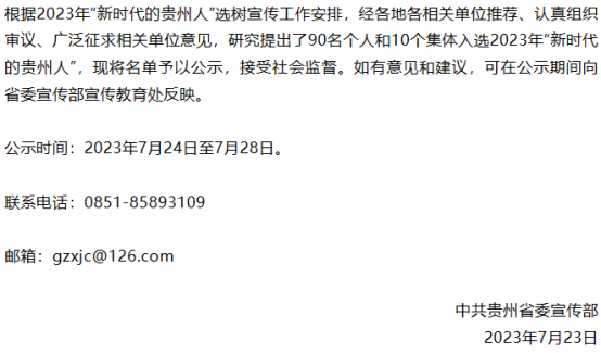 一、2023年“新时代的贵州人”个人入选名单(90名)