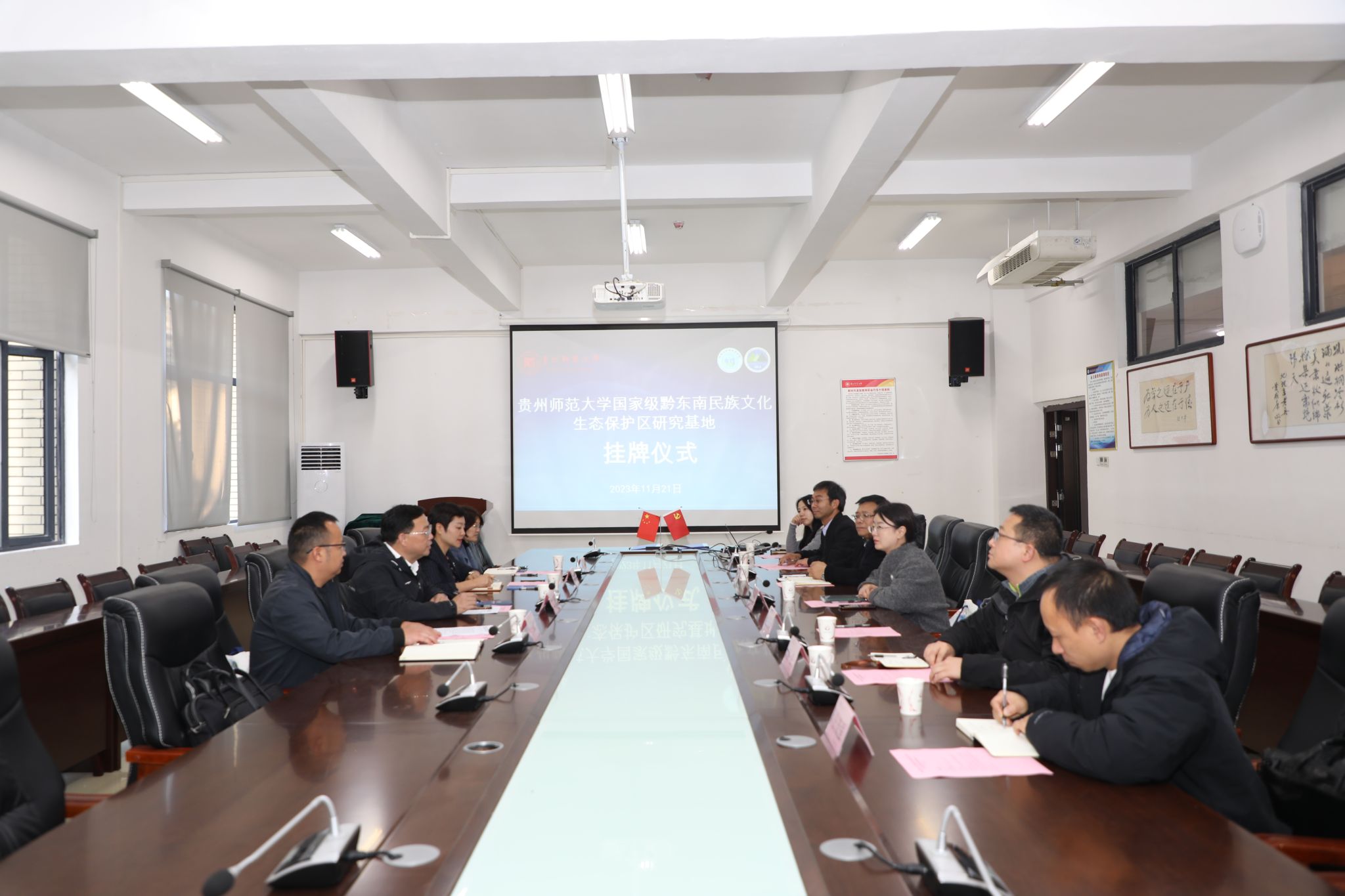 为落实立德树人根本任务,打造地理学黔东南实习实践金基地,同时,依托必赢地理学教育、科技、人才资源,助推国家级黔东南民族文化生态保护区建设和高质量发展。11月21日下午,必赢242net官网喀斯特研究院与黔东南州文体广电旅游局战略合作协议签订仪式暨必赢242net官网国家级黔东南民族文化生态保护区研究基地挂牌仪式在必赢顺利举行。黔东南州州委宣传部副部长、州文体广电旅游局党组书记、局长常海,副局长刘艳,必赢242net官网党委委员、统战部部长姚作舟,必赢242net官网(喀斯特研究院)党委副书记、院长周忠发,副院长赵翠薇、赵宇鸾出席。黔东南州文体广电旅游局民族文化生态保护实验区发展中心负责人杨勇富,文化遗产科科长杨红梅,必赢教工人文党支部书记王茂强、人文地理与城乡规划系主任赵航、办公室副主任范艺馨参会。会议由赵宇鸾副院长主持。