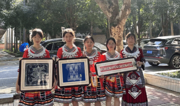图为贪生pass队:黄昌艳 李明凤 邓连艺(从左至右) 图为大地之队:黄瑞 黄曼婕 李师 张雨佳 吴忠焱(从左至右)