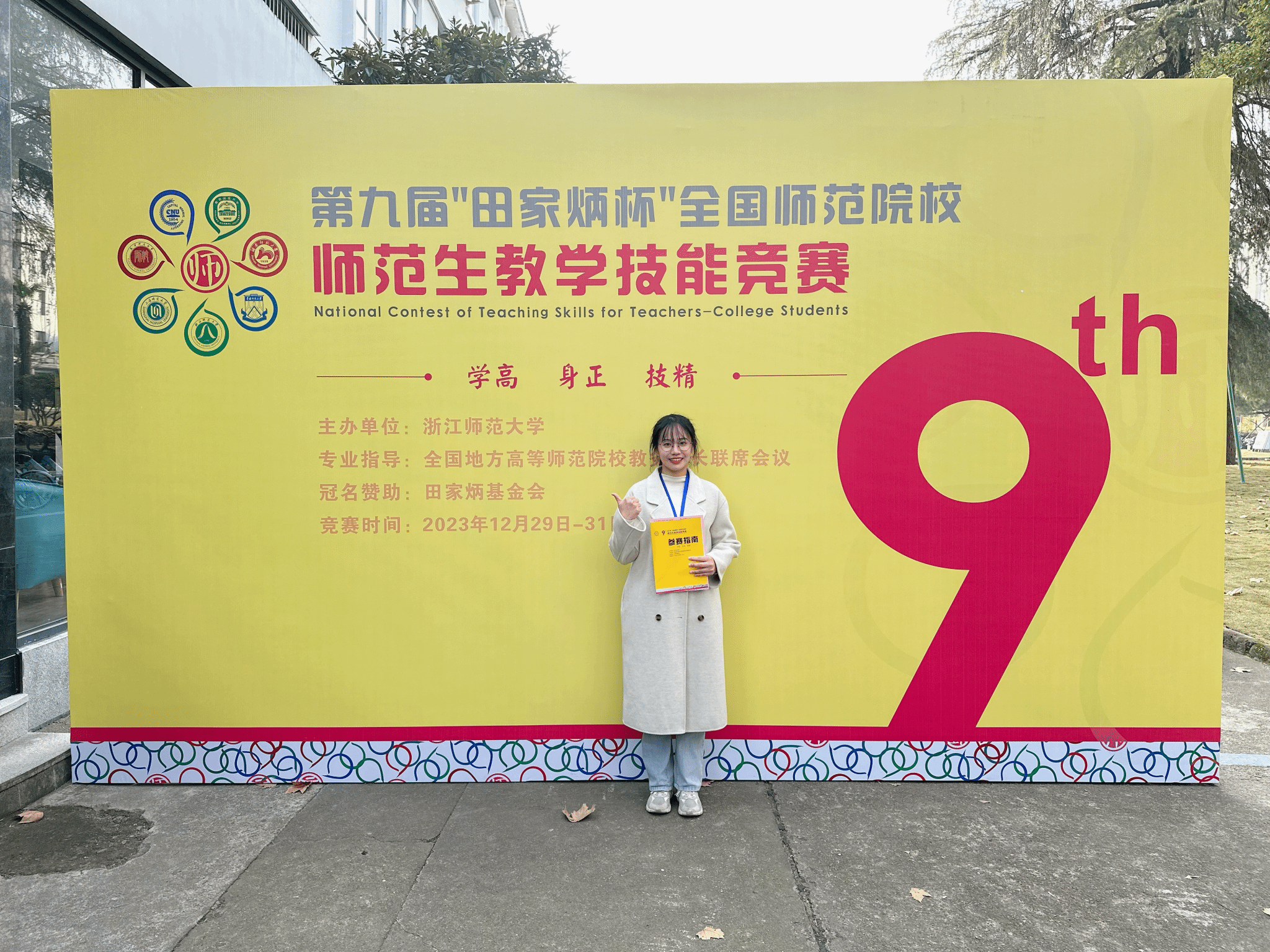 2023年12月30-31日,由浙江师范大学主办、全国地方高等师范院校教务处长联席会议指导的第九届“田家炳杯”全国师范院校师范生教学技能竞赛在浙江师范大学举行。必赢2020级地理科学专业本科生叶冰鑫(指导教师:何红、刘智慧)荣获二等奖。