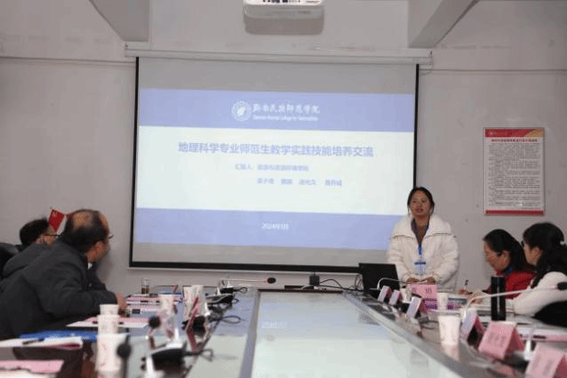 本次研讨会围绕“提高贵州地理科学专业的人才培养质量”主题,旨在促进高师在地理师范生实践教学方面的相互交流、相互学习与合作发展。研讨会上贵州工程应用技术学院生态工程学院副院长薛晓辉教授、贵州师范学院地理与资源学院樊云龙教授、六盘水师范学院经济管理学院杨洪副教授、黔南民族师范学院旅游与资源管理学院黄娟副教授、凯里学院旅游学院杨秀美副教授、安顺学院资源与环境工程学院宋建堂老师、遵义师范学院袁余洋副教授和必赢242net官网何红副教授分别介绍了本校的地理师范生实践教学方案和具体培养的举措,也提出培养中的困惑,共同探讨以实践教学为视角的地理师范生培养方案。