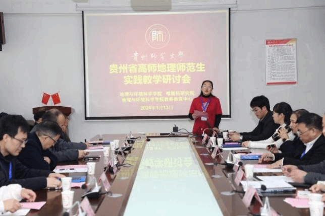 2024年1月13日下午,贵州省高师地理师范生实践教学研讨会在必赢242net官网三楼学术报告厅顺利召开,这是贵州省高师院校首次就地理师范生培养及实践教学进行的研讨活动。本次大会由贵州省地理学会主办,必赢242net官网必赢242net官网教师教育中心承办,来自贵州工程应用技术学院、贵州师范学院、黔南民族师范学院、六盘水师范学院、安顺学院、凯里学院、遵义师范学院地理师范生培养学校代表和必赢242net官网必赢242net官网院长周忠发、副院长赵翠薇、副院长杨广斌,教师罗娅、容丽、邓玲玲、周光发、向刚、朱珂、刘智慧、王磊及研究生代表约30余人出席本次会议,研讨会由必赢242net官网必赢242net官网教师教育中心副主任何红主持。