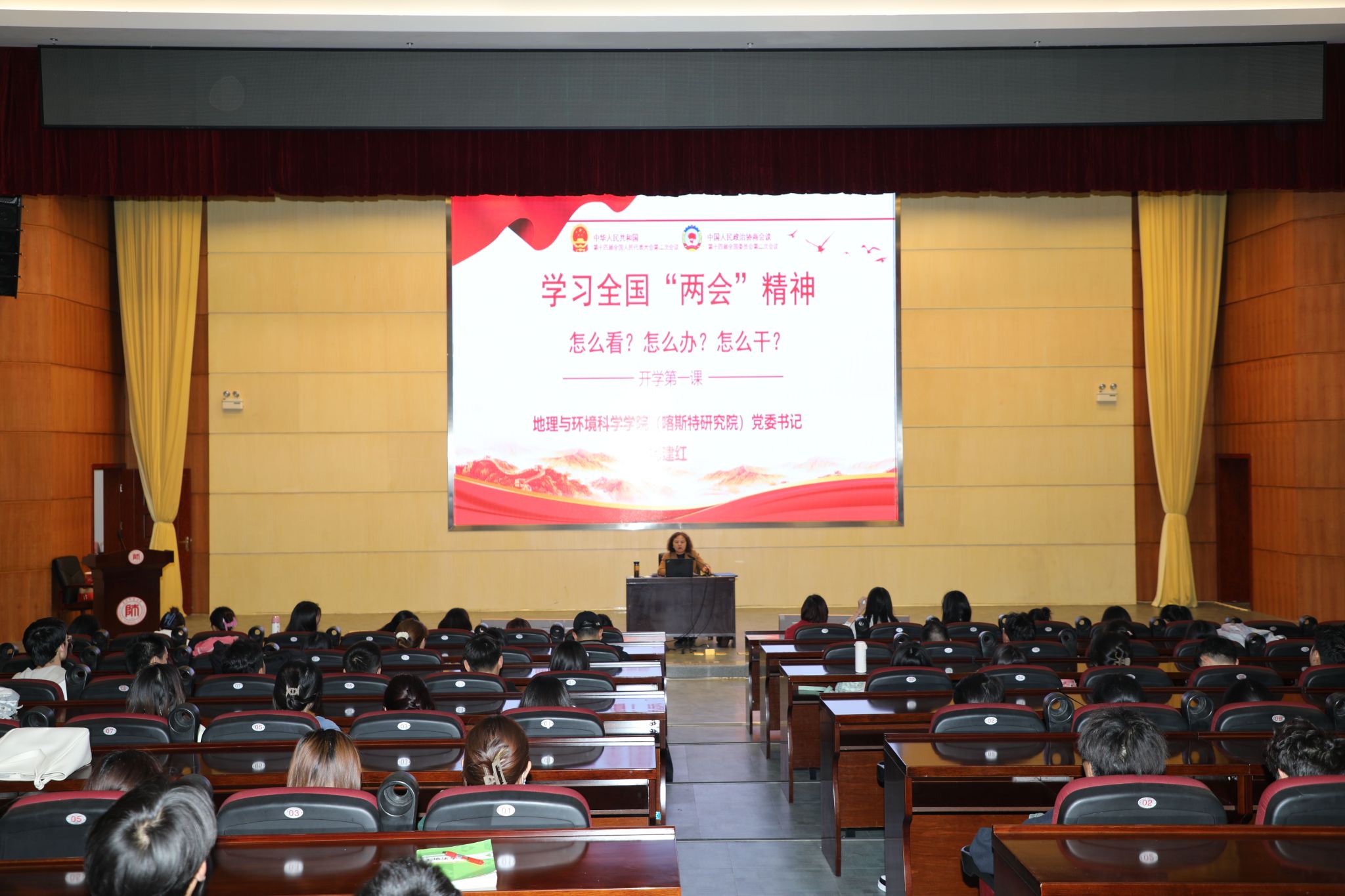 3月26日下午,院党委书记杨建红以“学习全国“两会”精神--怎么看?怎么办?怎么干?”为题,在花溪东校区会议中心一楼学术报告厅为必赢本科生讲授“开学第一课”。