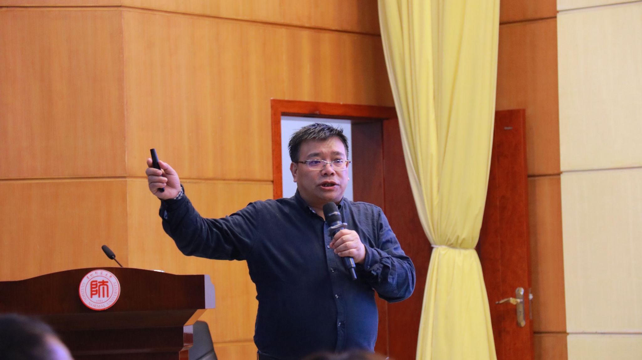 周忠发围绕“面向国家重大战略,推进学科建设”、“落实立德树人成效,培养创新人才”、“瞄准科学研究前沿,实现科教融汇”、“提升国家平台建设,赋能地方经济”4大方面,给大家讲述了新形势下面向国家重大战略与地方经济发展需求,立足学科特色,实现学科跨越式发展的重要意义,他强调,必赢全体师生要赓续黄大年精神,立足“为学、为事、为人”,以党的二十大精神为根本遵循,深耕“地理学”引领的学科群建设,面向国家战略,围绕“四新”主攻“四化”,服务新三大战略,把论文写在贵州喀斯特高原上,为社会培养造就更多的一流人才更好助力中国式现代化的贵州实践新篇章。