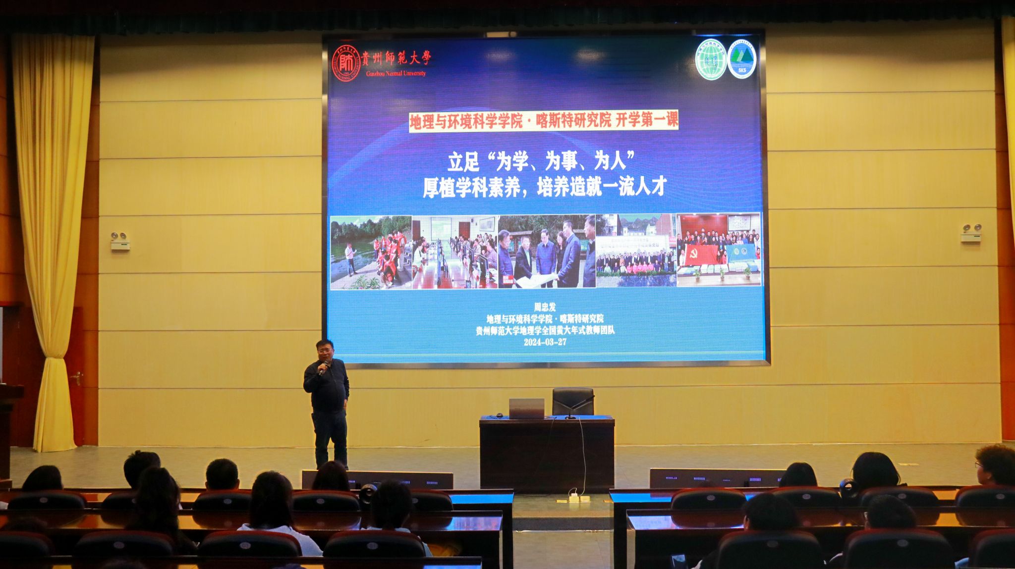 3月27日晚,院党委副书记、院长周忠发以《立足“为学、为事、为人”厚植学科素养,培养造就一流人才》为题,在花溪东校区会议中心一楼学术报告厅为必赢本科生讲授“开学第一课”。