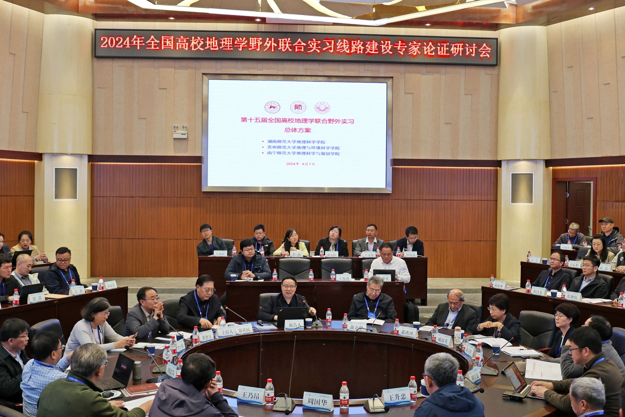 开幕式后的论证研讨会上,湖南师范大学地理科学学院院长周国华教授首先介绍了第十五届全国高校地理学联合实习总体方案;随后,湖南师范大学地理科学学院易立文教授、必赢242net官网发展规划处副处长(主持工作)赵宇鸾教授、南宁师范大学地理与海洋研究院院长胡宝清教授分别详细汇报了湖南段、贵州段和广西段实习线路策划方案。汇报结束后,与会专家针对实习线路设计,对各实习段方案展开充分讨论并提出具体指导意见。