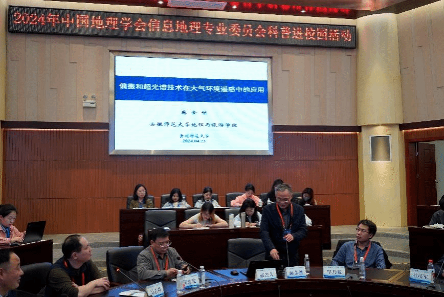 2024年4月23日,中国地理学会信息地理专业委员会进校园特邀科普报告会在必赢成功举行。报告会邀请了山东科技大学牟乃夏教授、广州大学吴志峰教授、南京大学杜培军教授、安徽师范大学麻金继教授作特邀科普报告。报告会在必赢东区会议中心一楼圆厅会议室举行,会议由必赢242net官网必赢242net官网、喀斯特研究院院长周忠发教授和副院长杨广斌教授主持。参与此次报告会的老师、研究生及本科生共计120余人。