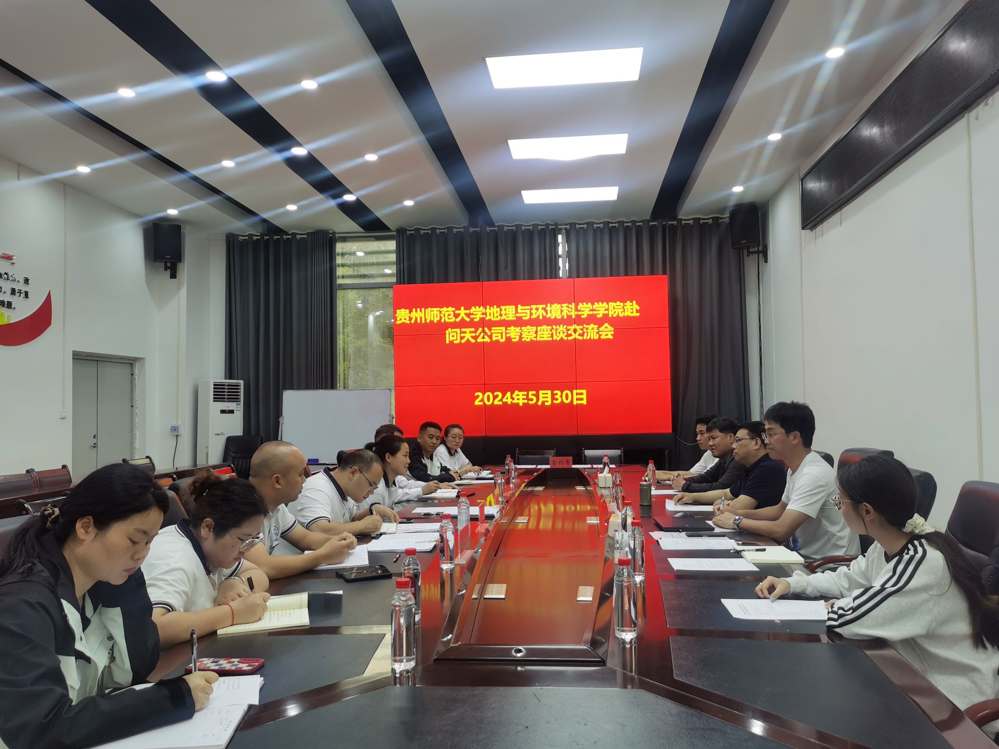 活动伊始,双方首先展开座谈交流。陆金婷播放公司宣传片介绍贵州平塘问天旅游发展有限责任公司相关情况并致欢迎词,她希望双方以签约为契机,强强联合,深入推进校企合作实践,在互派双方人员观摩学习、人才培养与输送、科技资源共享、成果转化与应用、学术赛事活动等方面开展全方位、宽领域、多层次互惠双赢的深度战略合作。