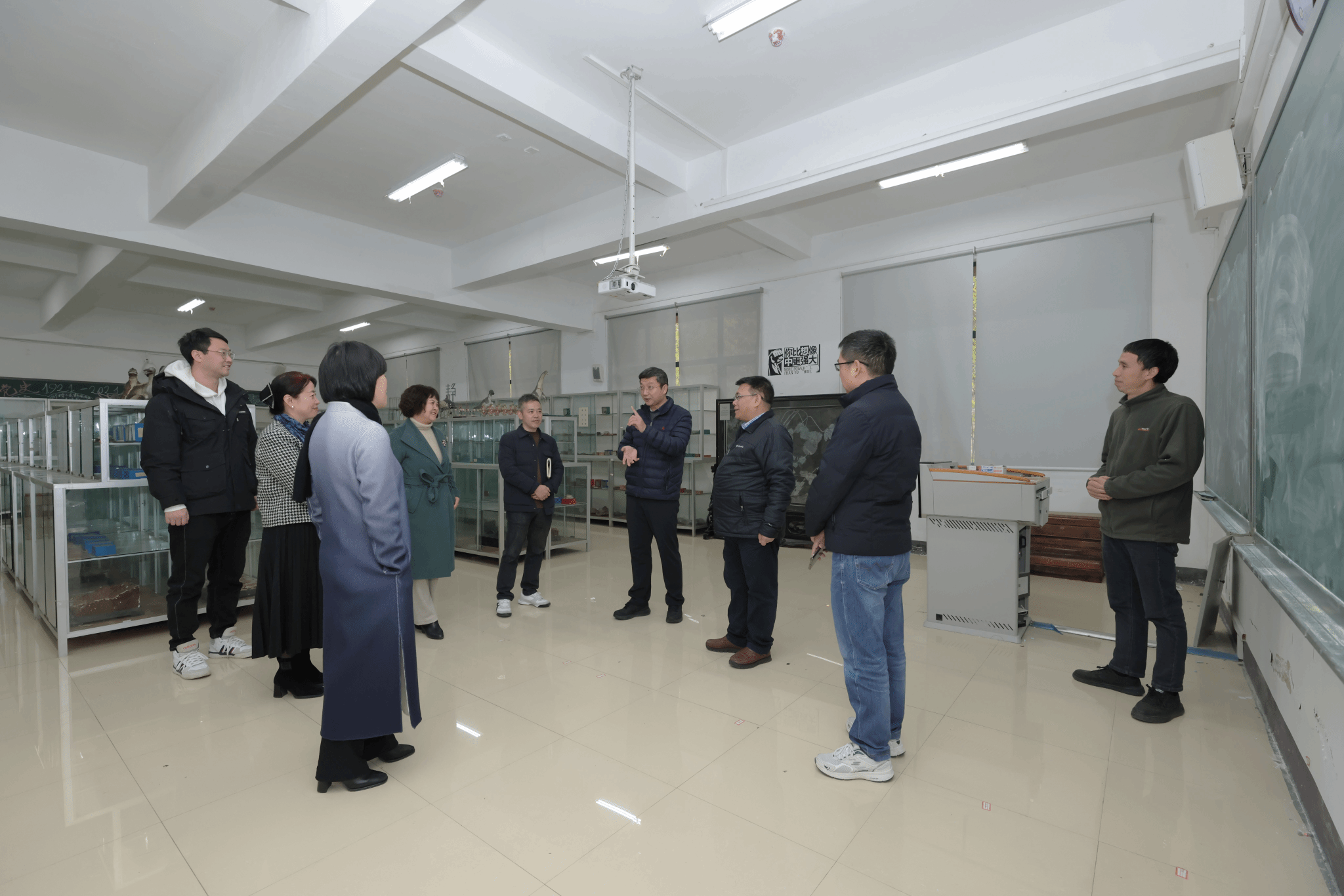 调研期间,黄其松一行首先实地考察了学院“地环园”校内学生综合实习实践基地、智慧教室、学院标本室,强调要充分发挥教学资源的育人功能、提升学生的专业认知与实践能力。
