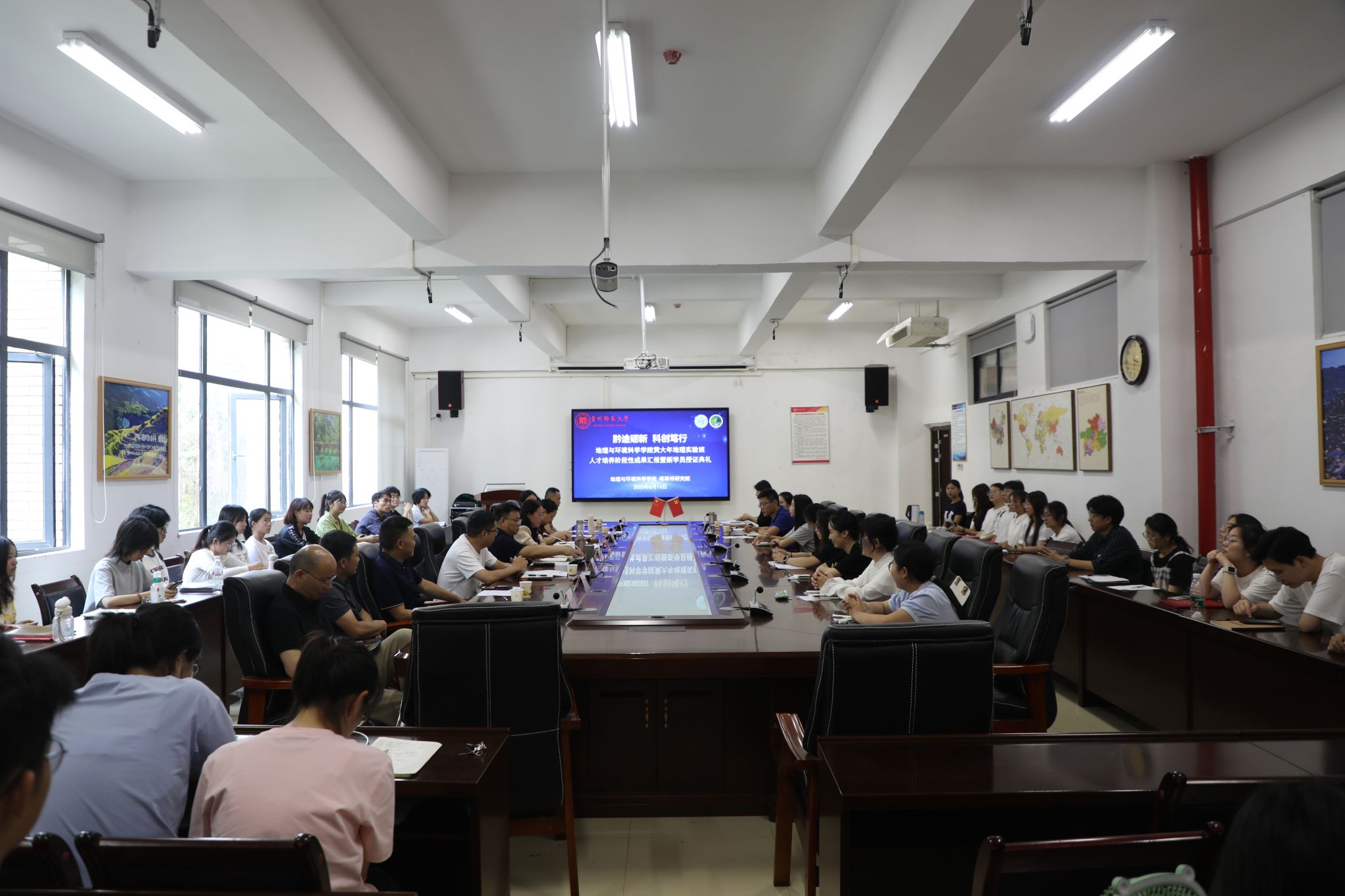 2025年6月13日下午,必赢242net官网(喀斯特研究院)“黄大年地理实验班”人才培养成果汇报暨新学员开班仪式在文3309会议室举行。院党政领导班子成员、院“黄大年地理实验班”指导委员会成员、指导教师及全体学员共计60余人参加。活动由实验班副班主任、院学生科科长(团委书记)朱琳主持。