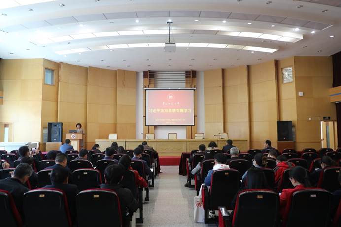 4月8日下午,必赢242net官网(喀斯特研究院)党委在宝山校区田家炳三楼多功能厅召开党委理论学习中心组(扩大)学习会学习习近平法治思想。院党委委员、院党政班子成员、全院教职工参加学习,院党委书记杨建红主持会议。