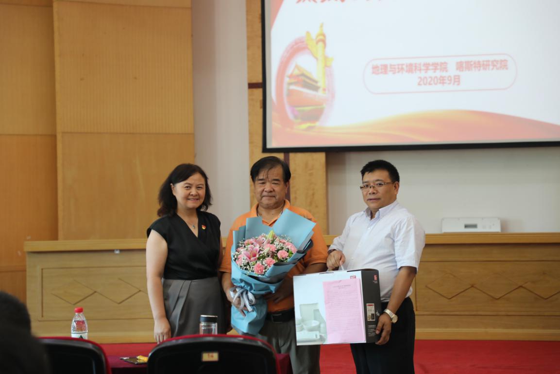 院党政领导代表院党委、院行政、院工会向潜心教学、为人师表的熊康宁教授献花并送上慰问品。
