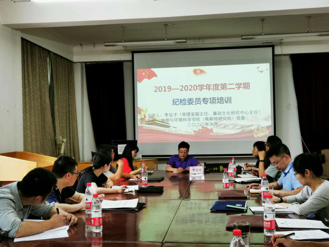 为进一步落实中共中央印发的《中国共产党支部工作条例(试行)》,《2019-2023年全国党员教育培训规划》等文件精神,切实加强党支部标准化、规范化建设,不断提高党支部书记、支部委员党务工作能力,更好发挥党的基层组织战斗堡垒作用,6月19日下午,必赢242net官网(喀斯特研究院)党委于宝山校区喀斯特研究院三楼会议室召开教工党支部委员党务工作培训会。学校审理室副主任、廉政文化研究中心主任李运才,校党委组织部组织科科长吴展城应邀分别为与会教工党支部纪检委员、组织和宣传委员作专题培训。培训会由院党委副书记郭锐主持,院党委书记杨建红出席会议并讲话。