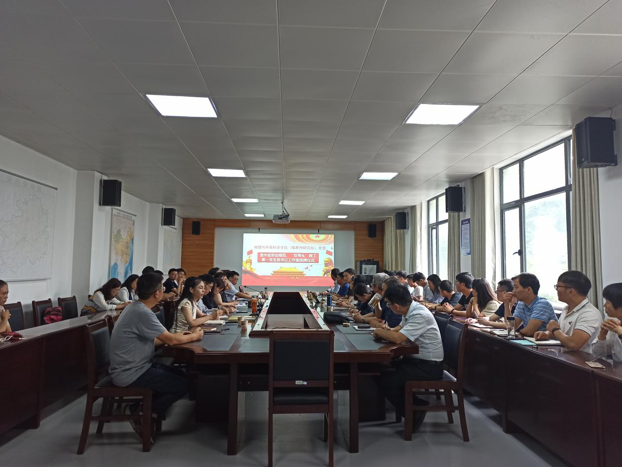 随后,教工第一党支部书记王恒松介绍了“双带头人”教工党支部书记工作室成立情况以及今后的工作方向;全国优秀教师、国务院政府特殊津贴专家、贵州省熊康宁劳动模范创新工作室熊康宁教授则向与会人员讲述了自己的奋斗故事,强调党员干部要有研学的专心,干一行、爱一行,钻一行、精一行的科研精神,激励广大教职工立足岗位、勇于担当、敬业奉献、开拓创新;教师党员代表朱大运则以党员如何立足本职岗位,充分发挥先锋模范作用,带动地理学科建设等方面内容做了分享。