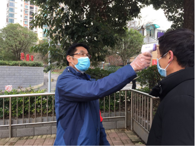 量体温,微笑询问来访人员