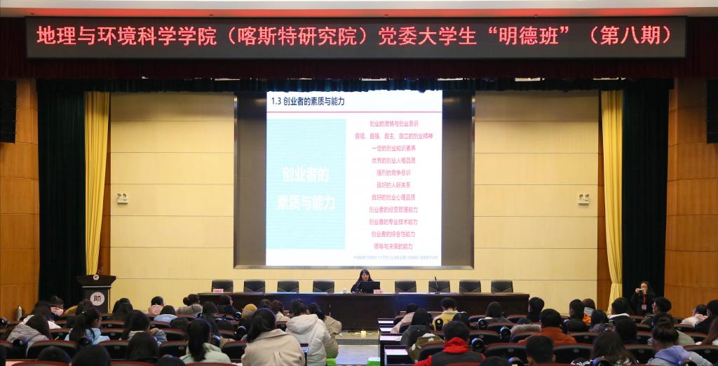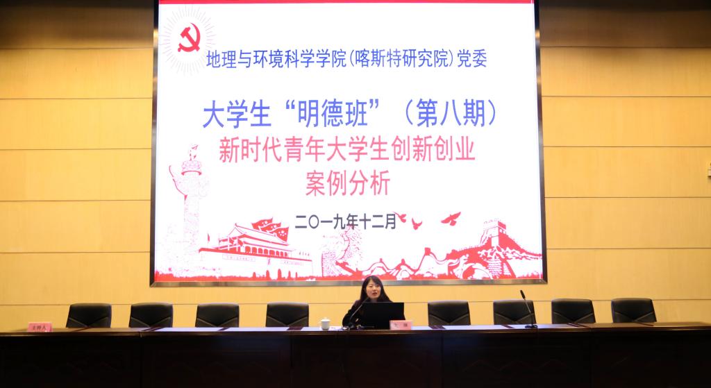 习近平总书记指出:新时代要有新气象更要有新作为。为深入贯彻落实习近平总书记重要指示批示精神,切实提高必赢学生新时代背景下的创新创业能力,引导学生树立正确的国家观、历史观、民族观、文化观。12月1日晚,在学校国际会议中心一楼学术报告厅,必赢242net官网(喀斯特研究院)团委书记朱琳老师为“明德班”(第八期)全体学员带来了一堂别开生面的培训讲座。