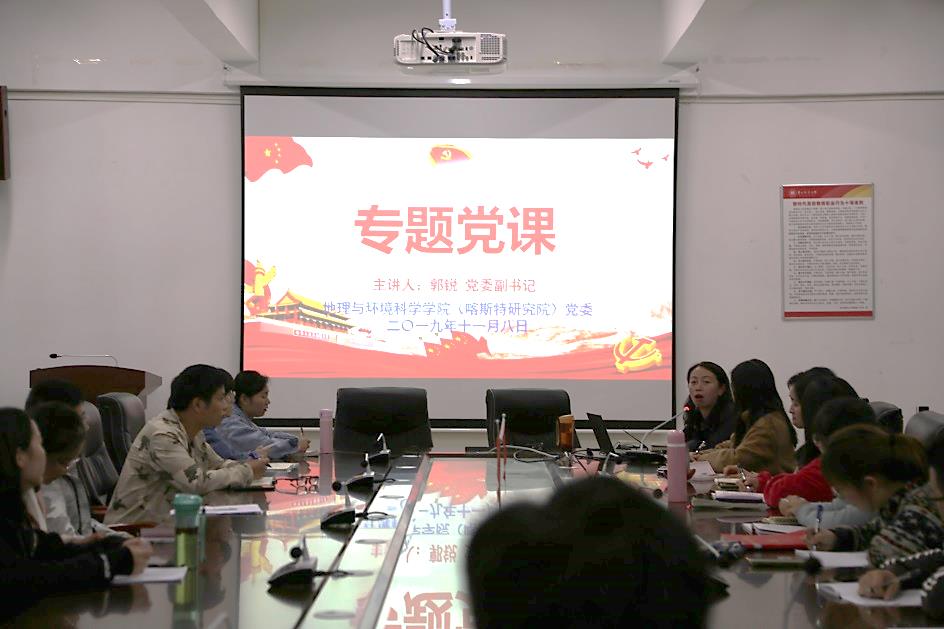 2019年11月8日,必赢242net官网(喀斯特研究院)党委副书记郭锐以《“不忘初心、牢记使命”——做新时代大学生党员先锋》为题,为学生党员上了一场充满智慧、生动的专题党课。