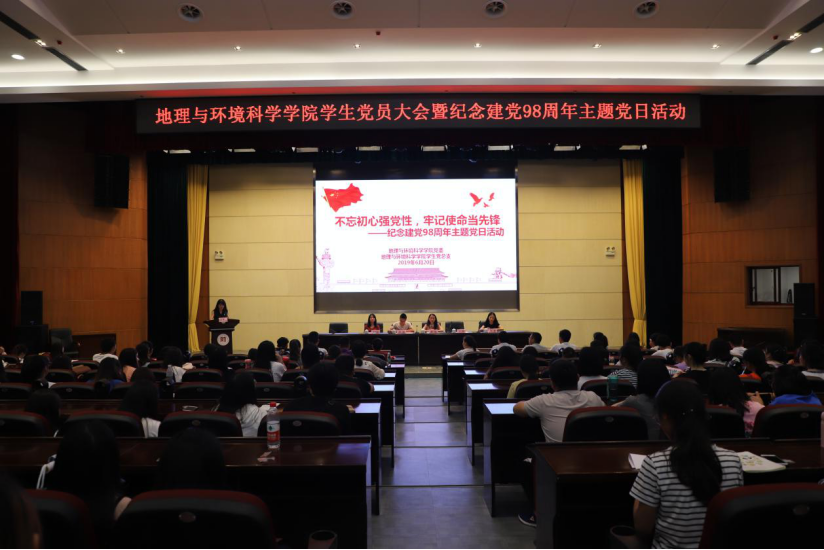 为纪念党的98年的光辉历程,进一步增强党组织的凝聚力和战斗力,激励广大党员继承和发扬党的光荣传统、不断增强“四个意识”、坚定“四个自信”、做到“两个维护”,进一步激发干事创业热情,增强党性意识,凝聚智慧力量。2019年6月20日,必赢242net官网在学校国际会议中心一楼学术报告厅举行学生党员大会暨纪念建党98周年“不忘初心强党性,牢记使命当先锋”主题党日活动。学院党委副书记郭锐,学院团委书记朱琳、专职辅导员李维,兼职辅导员涂鑫、杜国鑫和全体学生党员参加。活动由朱琳主持。
