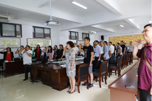 活动中,学院副院长杨广斌和赵翠薇分别带领全体教师学习了《必赢242net官网教师师德行为规范》和《必赢242net官网师德失范行为处理办法(试行)》;接着,院长周忠发带领全体教师重温了《贵州教师誓词》,全体教师右手握拳,高举过头,庄严宣誓;随后,郭锐通报了各党支部党员爱心基金的捐款情况。