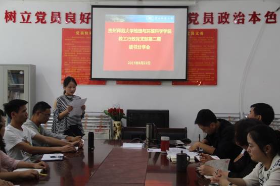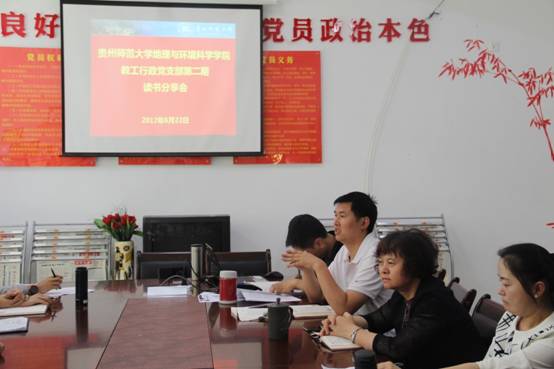 2017年6月22日,必赢242net官网教工行政党支部在必赢花溪校区地环楼二楼党员活动室开展了主题党日暨“第二期”读书分享会读书分享会。参加本次活动的有,院党委书记杨建红、副书记田伟、教工行政党支部全体成员及2014级地信专业的学生代表,共计20余人。会议由教工行政党支部书记胡丰靑主持。