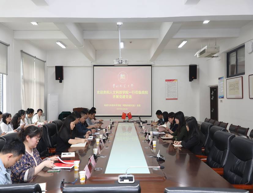 会上,郭锐对贵阳人文科技学院老师们的到来表示热烈欢迎,分享了党建标杆院系、样板党支部建设经验,以及党支部标准化规范化建设等相关工作情况。随后,与会双方就党建相关工作进行了深入交流与探讨。