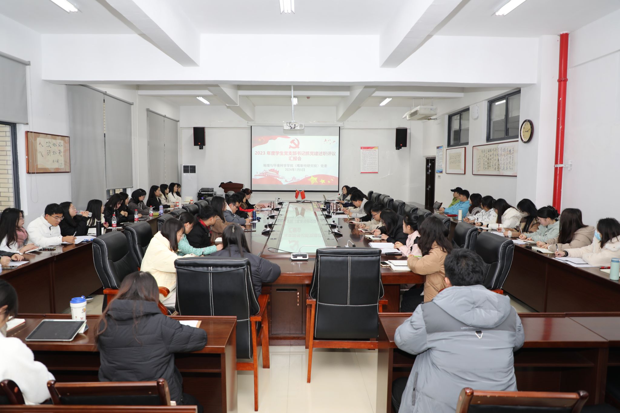 会上,与会人员认真填写了评议表,对2023年度教职工生32个党支部书记抓党建工作进行评议。