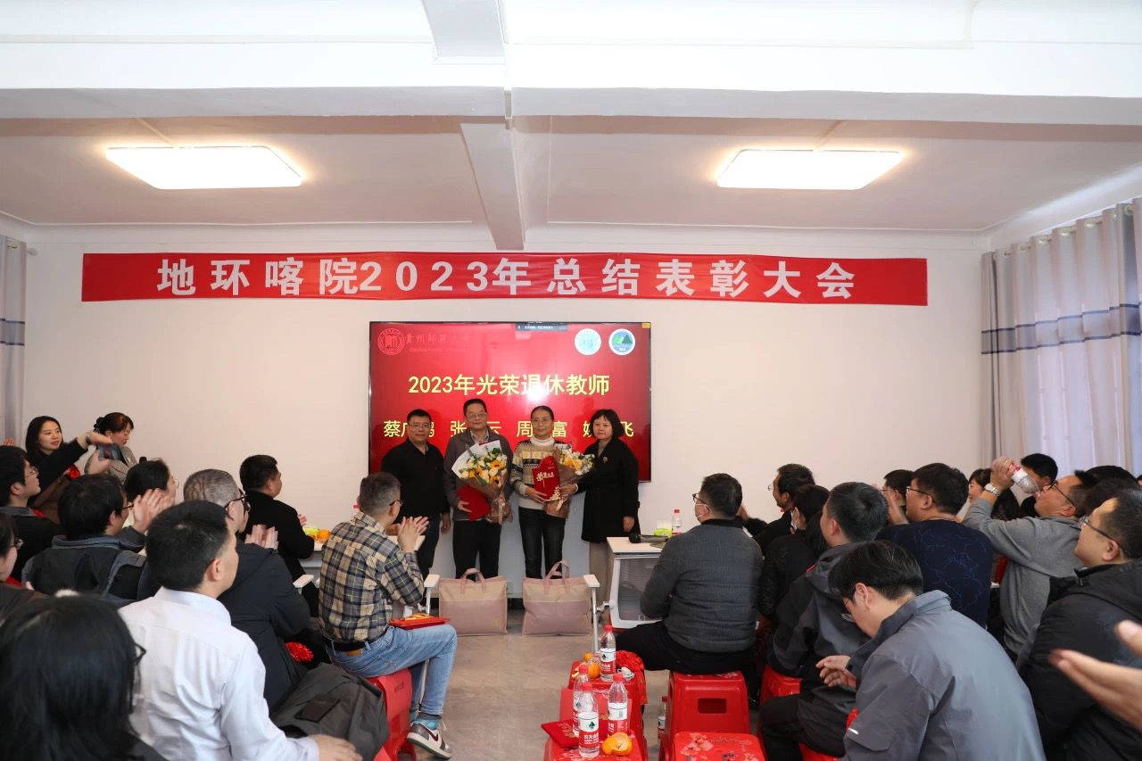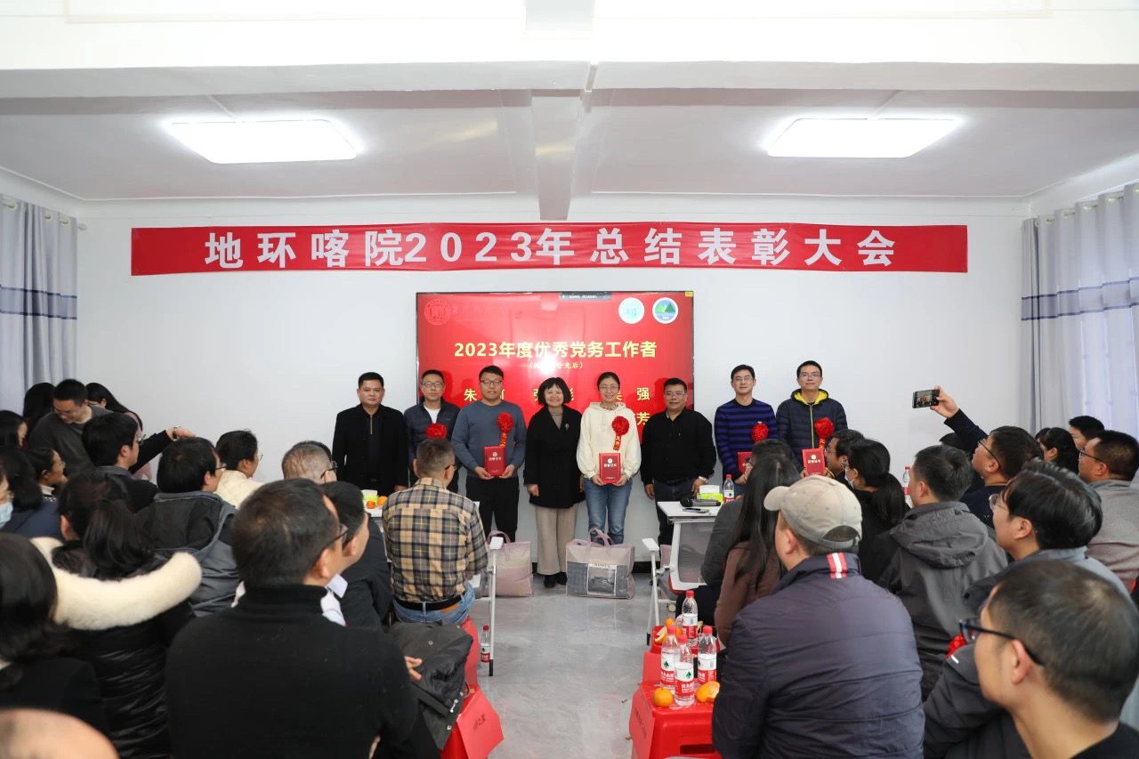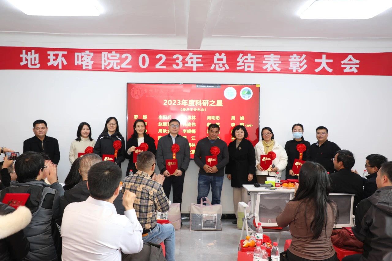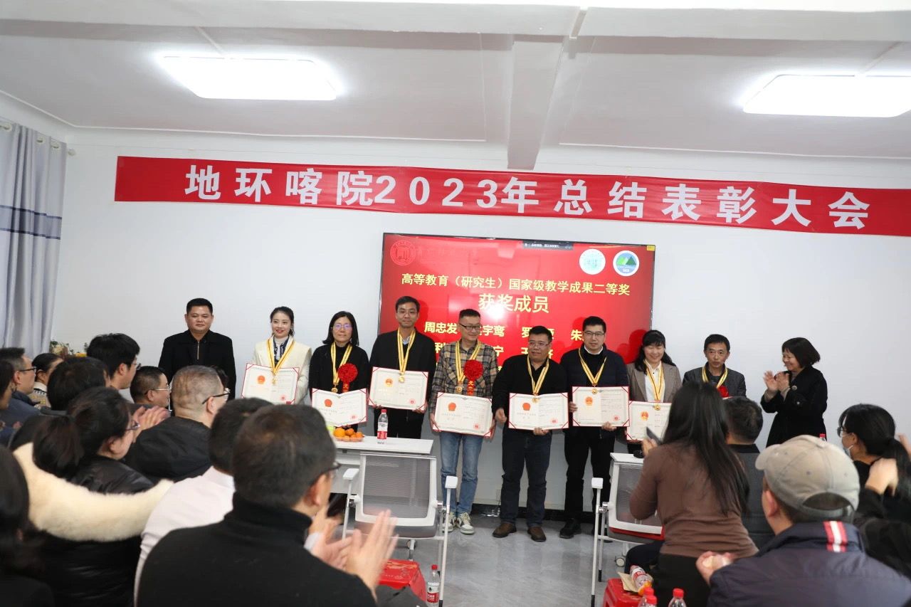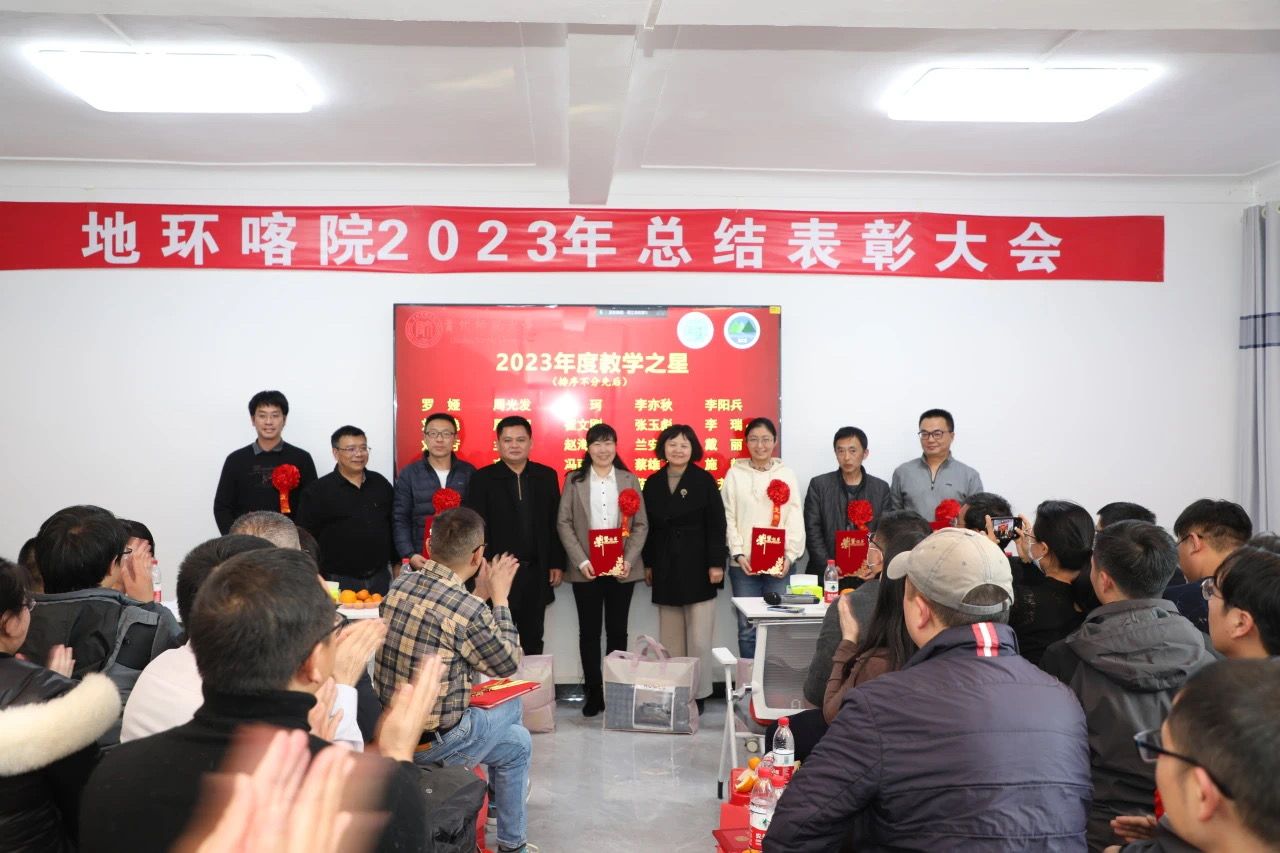 院党委书记杨建红为必赢获全国高等教育(研究生)国家级教学成果二等奖、由周忠发教授领衔的《赓续黄大年精神,立足为学为事为人,创新地理学多层次人才培养体系与实践》项目获奖成员颁奖;赵宇鸾副院长宣读2023年度优秀共产党员、优秀党务工作者表彰文件;朱大运副院长宣读2023年度先进个人(教学之星、科研之星、服务之星)表彰文件,院党政班子成员为获得以上荣誉的教职工颁奖。