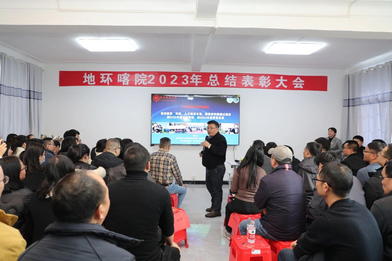 会上,院党委副书记、院长周忠发以“坚持教育、科技、人才统筹布局,推进学科跨越式建设——创2023年新历史突破,续2024年高质量发展”为题,围绕“落实立德树人,厚植学科建设”、“推进科教融汇,引培育人团队”、“实施产教融合,提升育人平台”、“赓续大年精神,创新育人体系”4大方面发表了热情洋溢的年度总结致辞,他勉励大家,以党的二十大精神为遵循,扎根西部,为社会培养更多一流人才,培养更多“四有”好老师,把论文写在喀斯特高原峡谷区的石旮旯地里。
