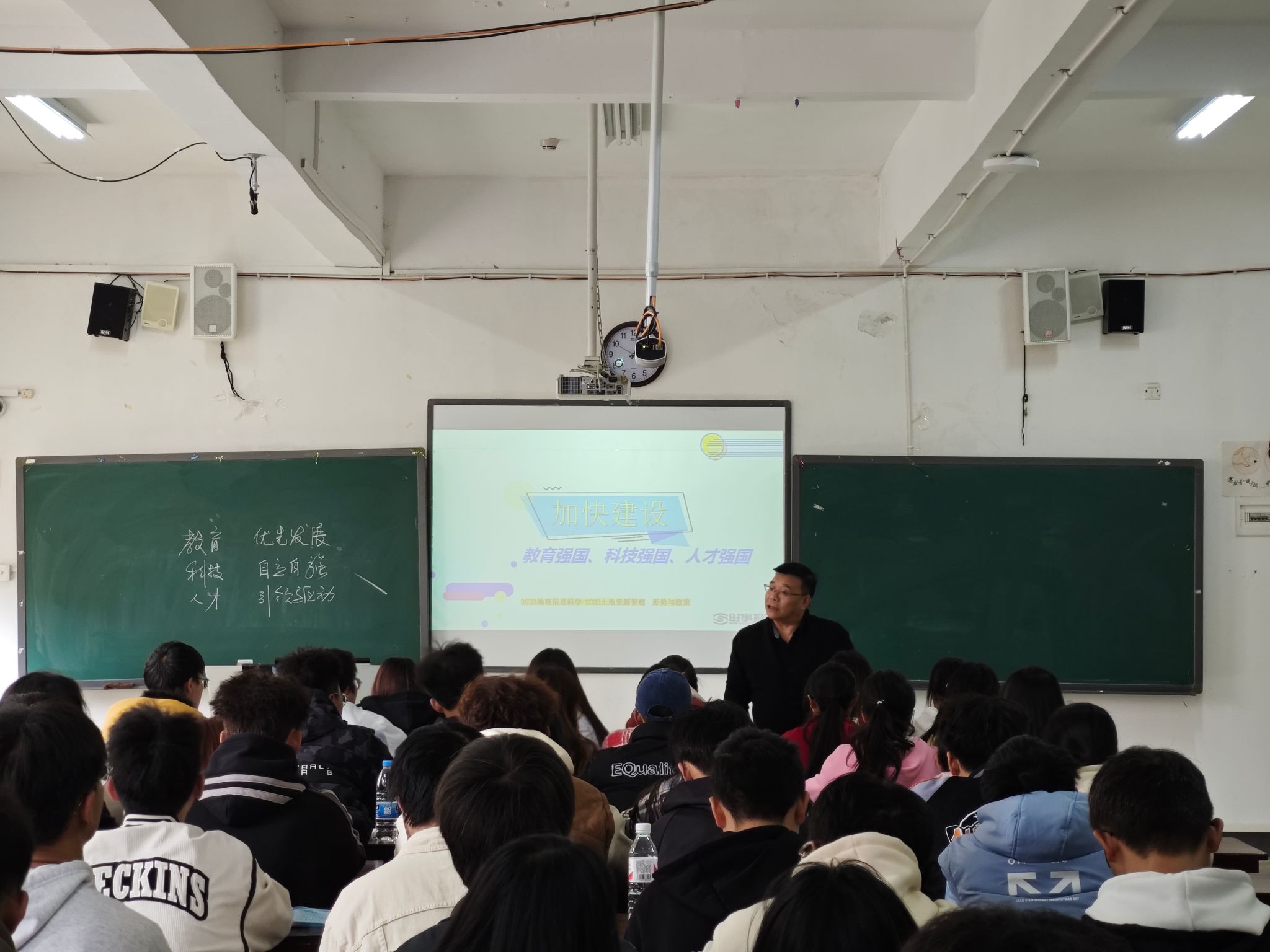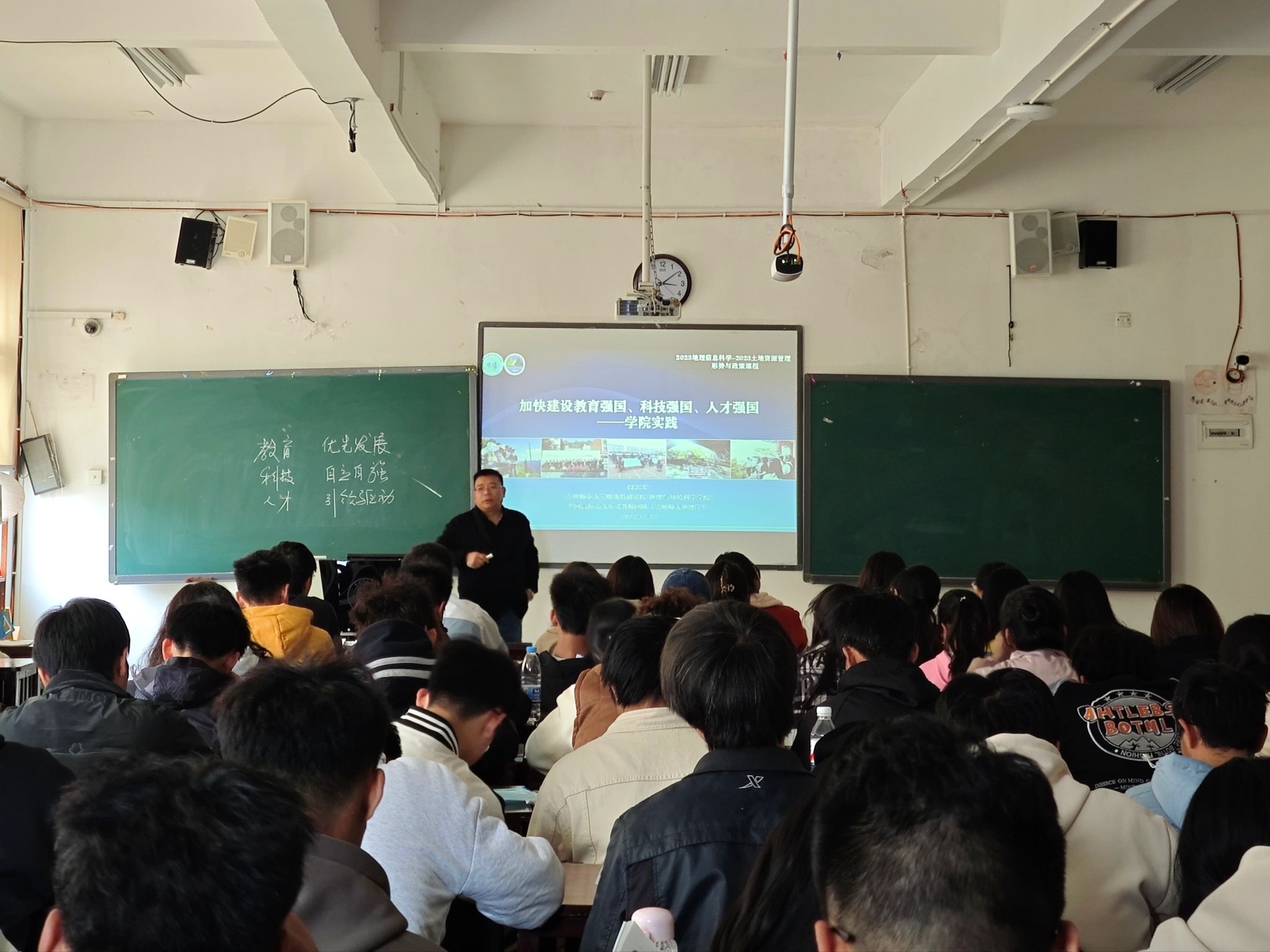 12月12日下午,院党委副书记、院长周忠发以“加快建设教育强国、科技强国、人才强国”为题,在花溪东校区地环楼3202教室为必赢2023级地理信息科学、2023级土地资源管理专业本科生讲授《形势与政策》课。